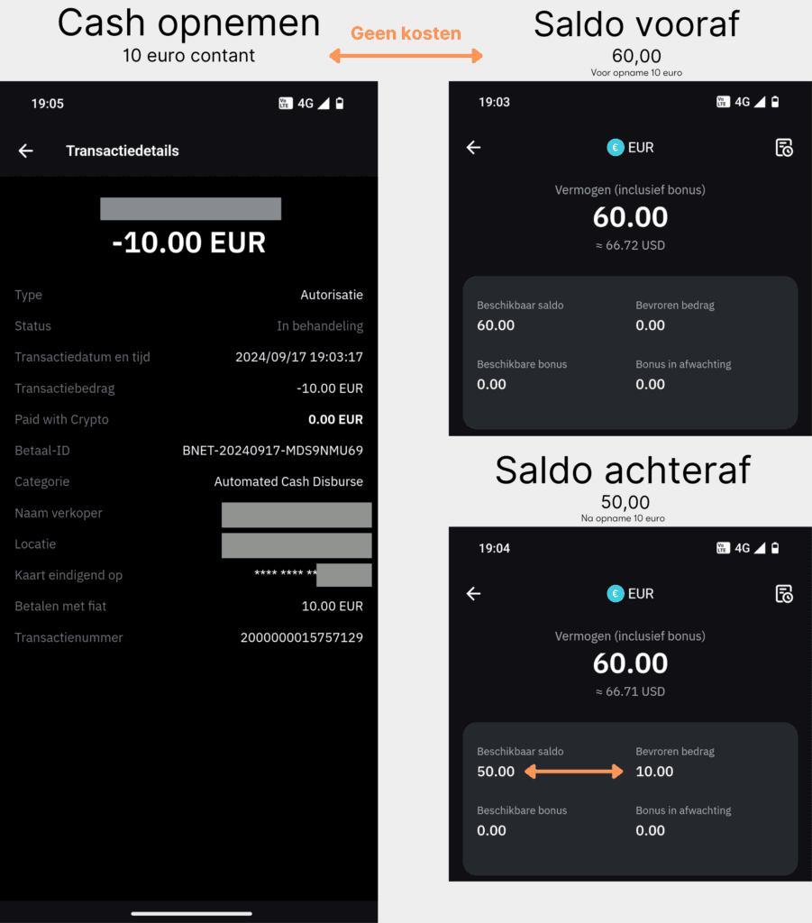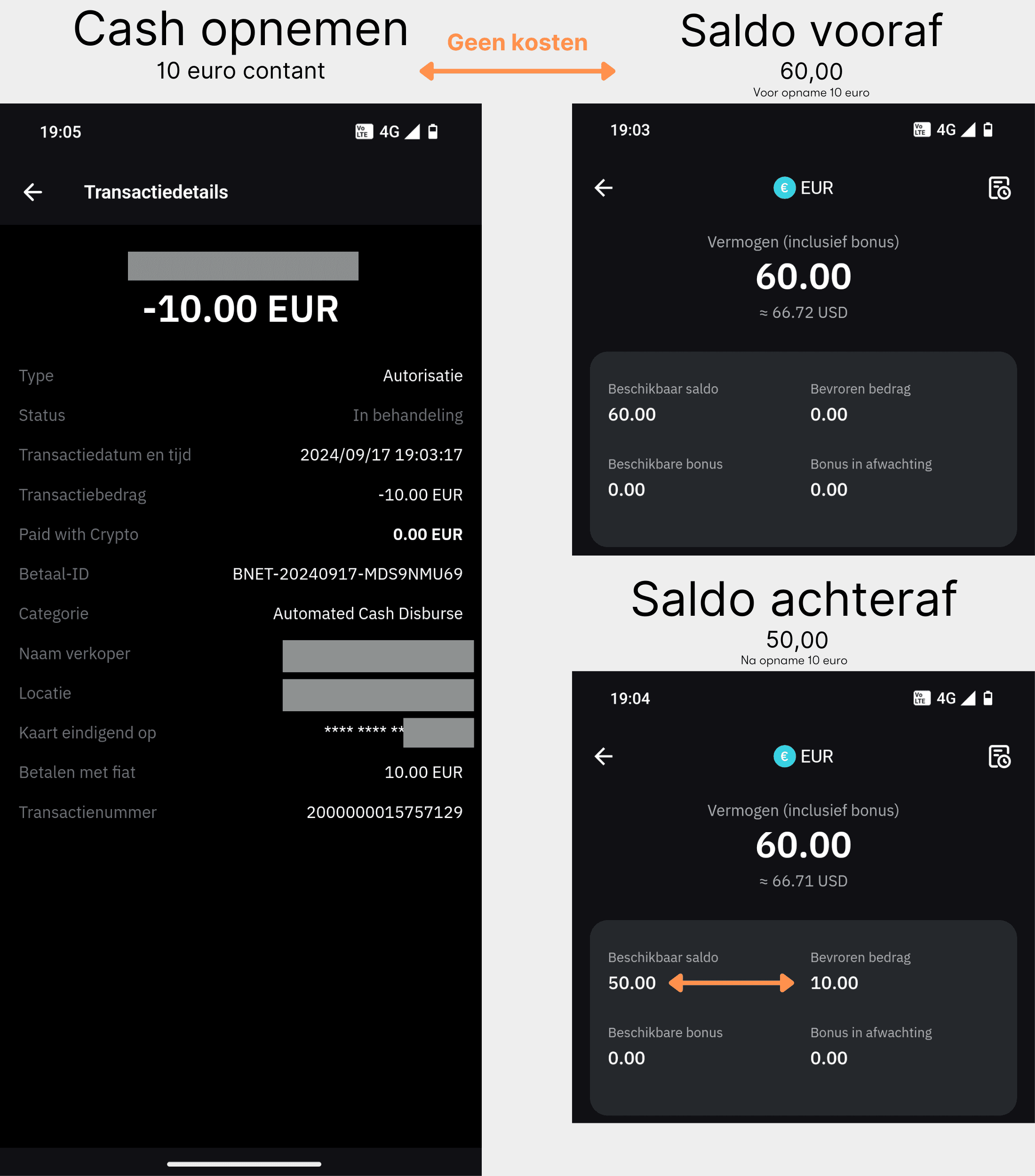 Kosten cash opnemen | Gratis t/m €100p/m, daarna 2% |